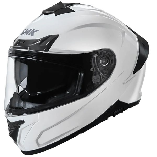 Cască integrală SMK Typhoon, culoare alb, destinată utilizatorilor care caută un nivel ridicat de protecție și confort în utilizarea zilnică. Modelul este unisex și oferă acoperire completă a capului, fiind potrivit pentru motociclete și scutere.