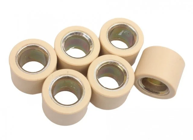 Set de role variator pentru scutere Honda SH și Kymco Dink 125–150cc. Rolele au dimensiunea standard 20×15 mm și sunt ideale pentru înlocuirea rolelor uzate, asigurând o funcționare lină a variatorului, accelerație optimă și performanță constantă.