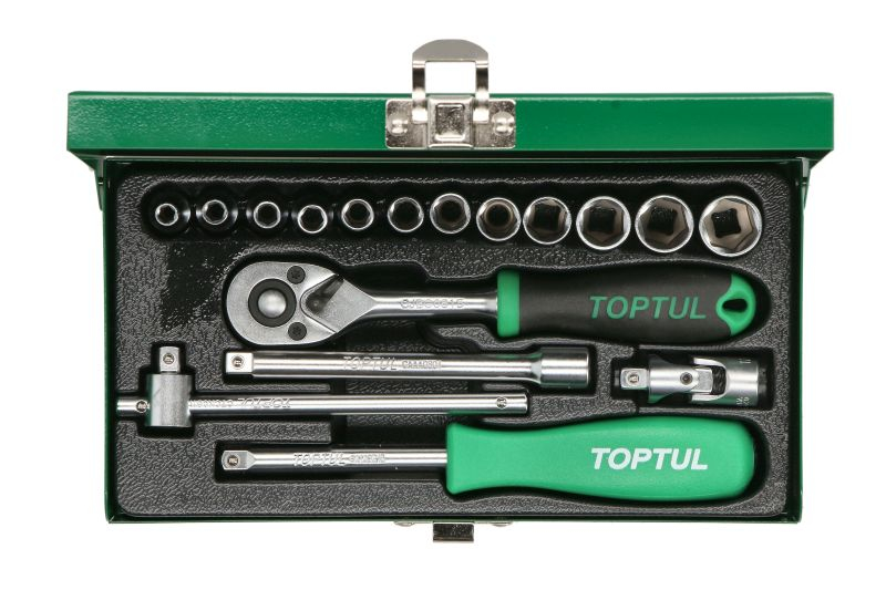 Trusa profesională TOPTUL, formată din 17 piese, este concepută pentru mecanici, tehnicieni și meșteri care au nevoie de o selecție compactă, durabilă și precisă de tubulare și accesorii 1/4". Setul include clichet, prelungitor, articulație universală și tubulare hexagonale 6PT în toate dimensiunile esențiale pentru lucrări auto, moto, industriale și montaj. Ambalată într-o cutie de plastic rezistentă, trusa oferă organizare excelentă și acces rapid la fiecare unealtă.